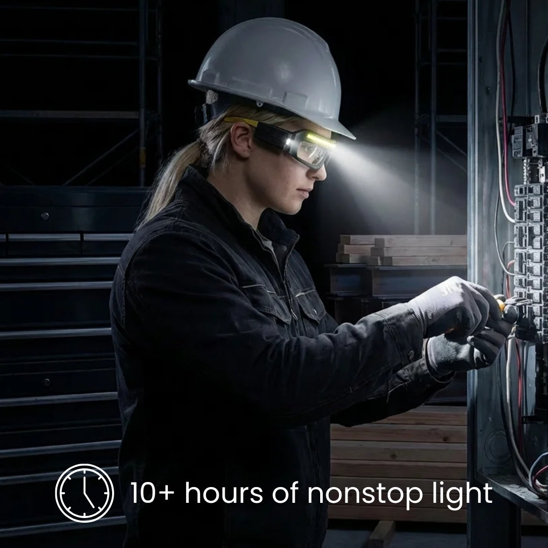 LumiGuard™ shields your eyes while its focused LED brightens whatever you're working on. You get clearer detail, fewer mistakes, and safer working conditions — especially in dim, dusty, or confined environments. Whether on job sites or home projects, you can see more, avoid hazards, & work with confidence.